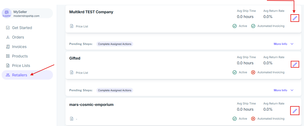 If the automated invoicing is possible with this retailers, you will see the toggle enabled after saving. If there is an issue with automated invoicing after the retailers has been updated we'll let you know what the problem is along a link to an article helping to remedy the issue: