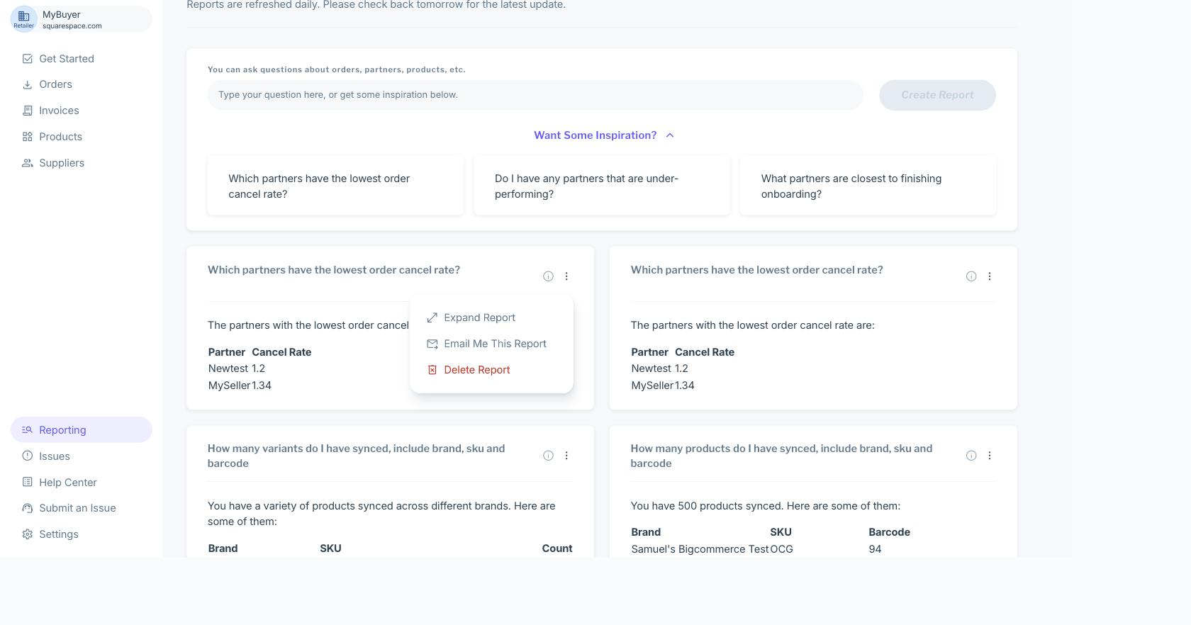 Carro Now Powering Modern Dropship has a unique reporting feature that will allow you to generate reports using natural language to query our system and provide the requested information in a variety of formats.