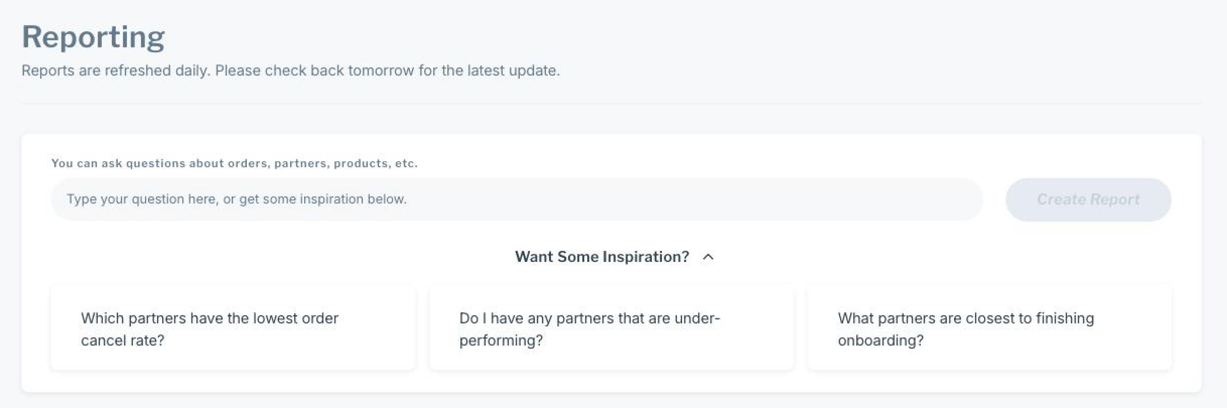 The landing page will provide some inspiration on what is possible with this feature, but from there, you can get started asking questions that are pertinent to your business: