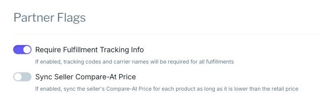 Require Fulfillment Tracking information - If enabled, tracking codes and carrier names will be required for all fulfillments.