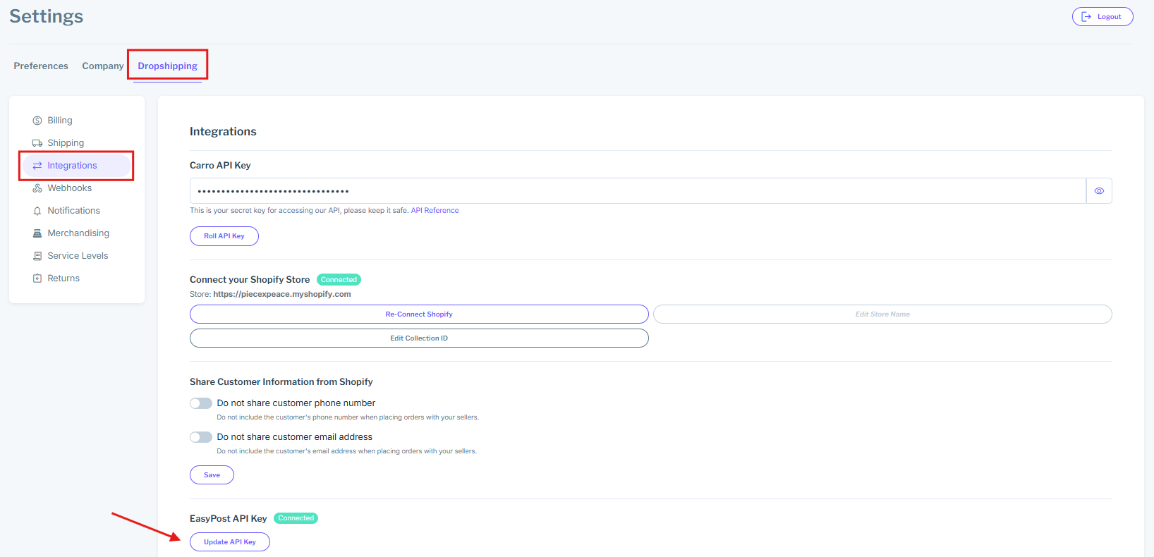Carro Now Powering Modern Dropship integrates with Easypost to allow you to share prepaid shipping labels with your partners.
